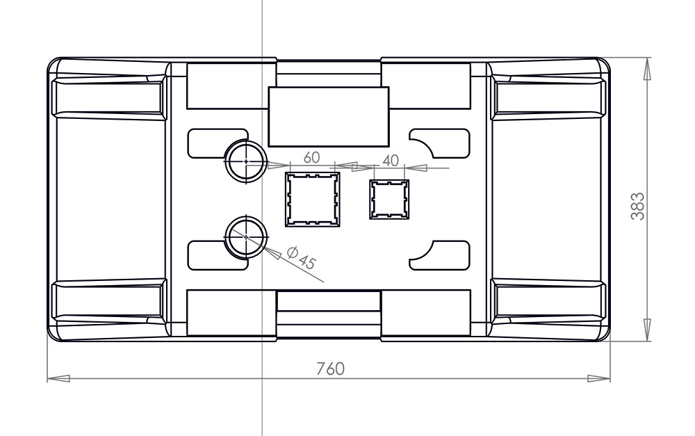 otwory mocujące słupy: 4 * Ø 45 mm, kwadrat 60 mm